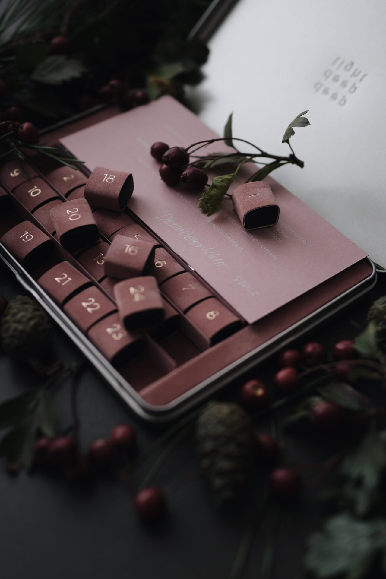 We believe the secret ingredient in all this is to find time and place to enjoy, to experience, and to allow ourselves to immerse in the magic of giving. Finding a place and time for contemplation every day might be our way of experiencing the festive season. Those precious minutes of unwrapping a tiny color of the day, waking it up, feeling the subtle scent of sandalwood and lemongrass, listening to favorite winter music, and feeling the bitterness of divine chocolate. Chocolate with cacao beans from Tanzania melted in Latvian forests with plants from our Baltic summer meadows. Isn’t it fabulous? The whole world in five senses. Truly happy place!