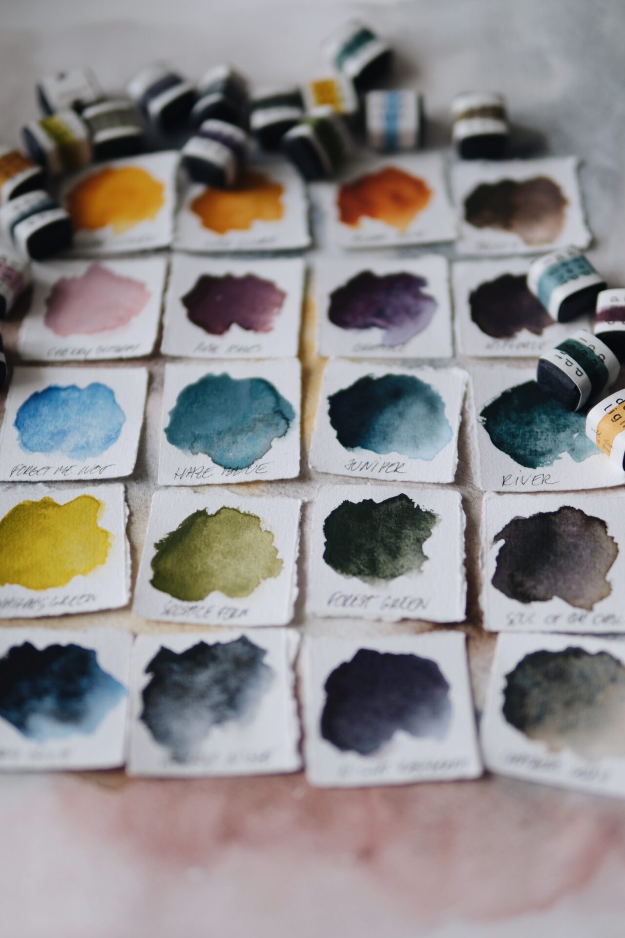 Here are our 20,  and you are welcome to choose a smaller palette by yourself. Just add your color wishes in order notes. All sets come in tins in appropriate sizes. Please let us know if you would like to have another size with your paints, and as always – you can swap colors (also from not top 20 :)).